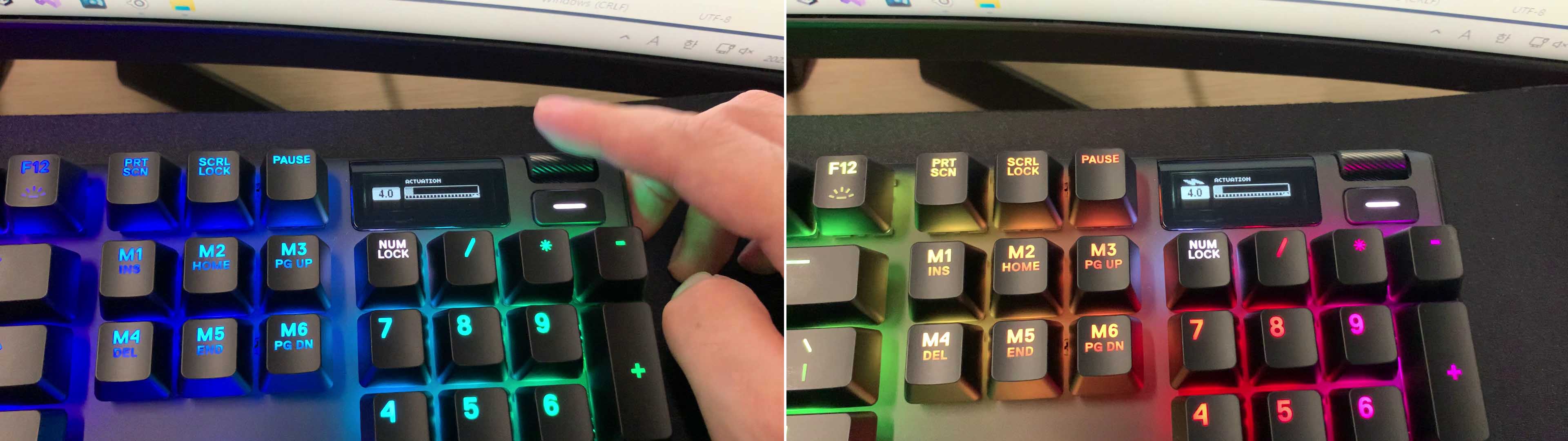 LED 색상과 패턴으로 멋진 효과로 꾸밀 수 있고 OLED 디스플레이에서 나만의 특별한 키보드로 커스트마이징을 할수 있어서 한층 더 큰 매력을 느낄 수 있습니다.뛰어난 성능, 감성까지 모두 채워주는 키보드입니다. 게임에 진심인 플레이어라면 직접 사용해 보시는걸 추천드립니다.