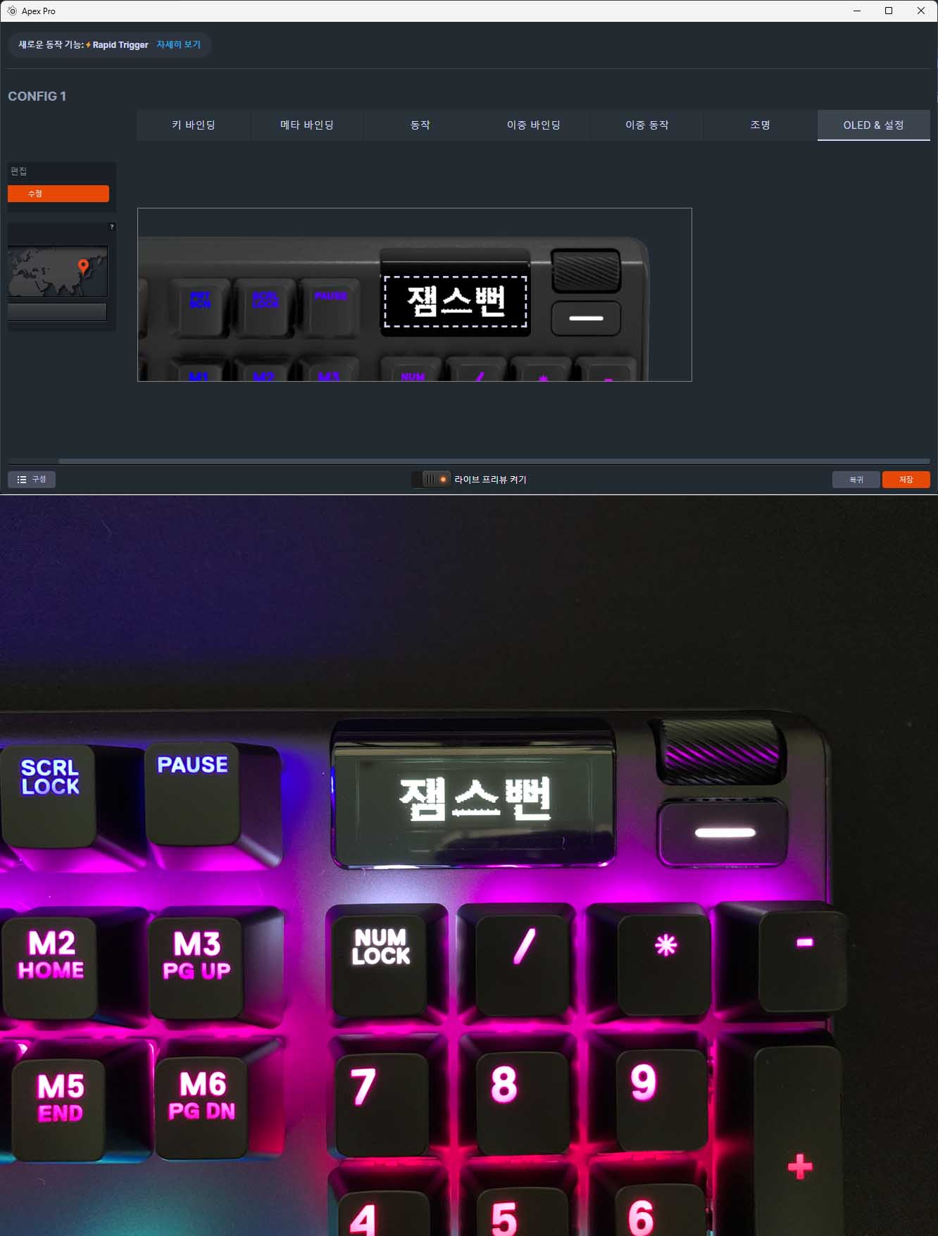 [OLED & 설정]탭에서는 OLED 디스플레이에 원하는 이미지를 넣어 변경할 수 있는데, 나만의 키보드로 더욱 특별하게 만들 수 있습니다. 프리미엄 키보드 답게 이런 감성까지 챙기는 맛에 장비에 투자를 하는거 같습니다.