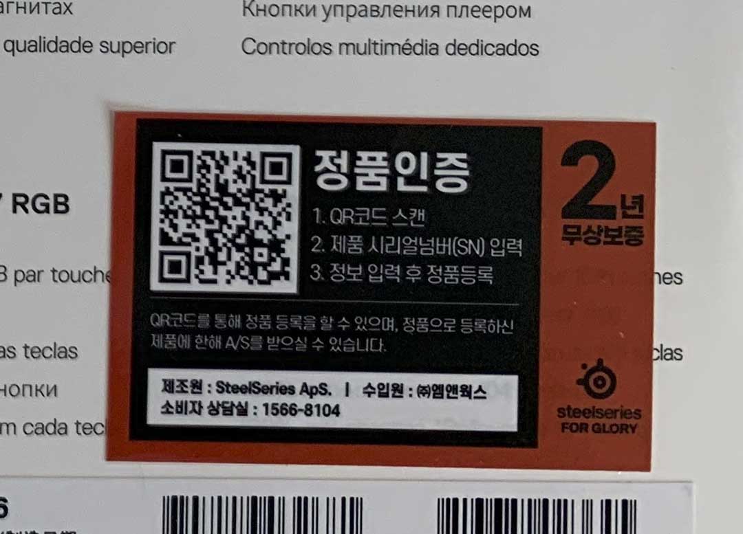 본 제품은 스틸시리즈 공식수입원인 (주)엠앤웍스를 통해 정품 등록 후 A/S 서비스를 받을 수 있습니다.