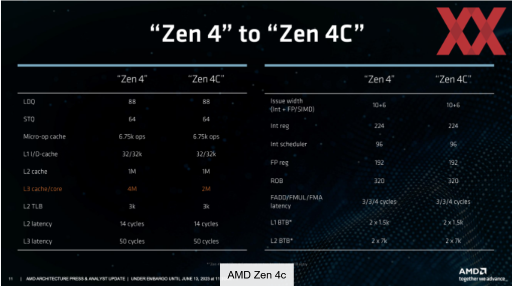 Strix Point에서는 이 조합이 표준이 되어야 합니다. 최대 확장을 설명해야 하는 사양은 Twitter를 통해 공유됩니다. 따라서 Strix Point는 Zen 5 코어 4개와 Zen 5c 코어 8개를 사용해야 합니다. Zen 5 코어는 각각 1MB의 개인 L2 캐시를 제공합니다. 4개의 Zen 5 코어 모두에 대한 L3 캐시는 16MB라고 합니다. Zen 5c 코어에는 512kB의 L2 캐시와 16MB의 L3 캐시가 있습니다.