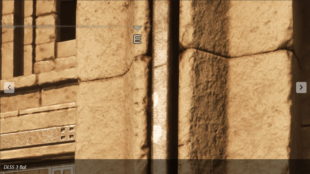 10배 확대 사진입니다 . DLSS 3이 더 부드러워 보이는 반면 FSR 3은 더 선명하게 보이는 이유를 설명합니다. 전자는 샘플 수가 더 많은 반면 후자는 공격적인 샤프닝 필터를 활용하여 이미지 품질을 향상시킵니다.