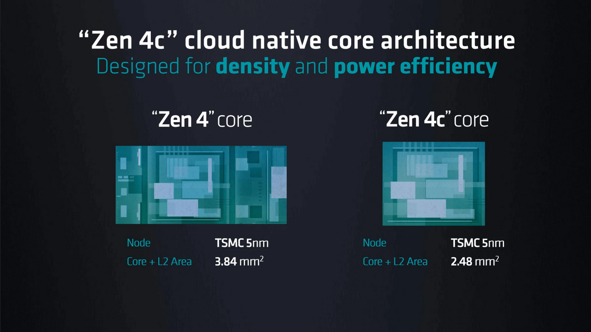 Zen 5 "P" 코어는 CCD(8개 코어)당 32MB의 L3 캐시로 지원되는 반면, Zen 5c "E" 코어는 이를 절반으로 줄여 8개 코어당 8MB로 줄입니다. TSMC의 5nm급 노드에서 Zen 4c는 바닐라 Zen 4 코어보다 최대 40% 작습니다 . Ryzen 8000 "Strix Point" 제품군은 Zen 5 코어 4개와 Zen 5c 코어 8개로 구성될 것으로 알려졌습니다. 각 Zen 5 코어는 Zen 5c와 마찬가지로 1MB의 L2 캐시와 결합되어 총 L2 캐시가 각각 4MB와 8MB가 됩니다.