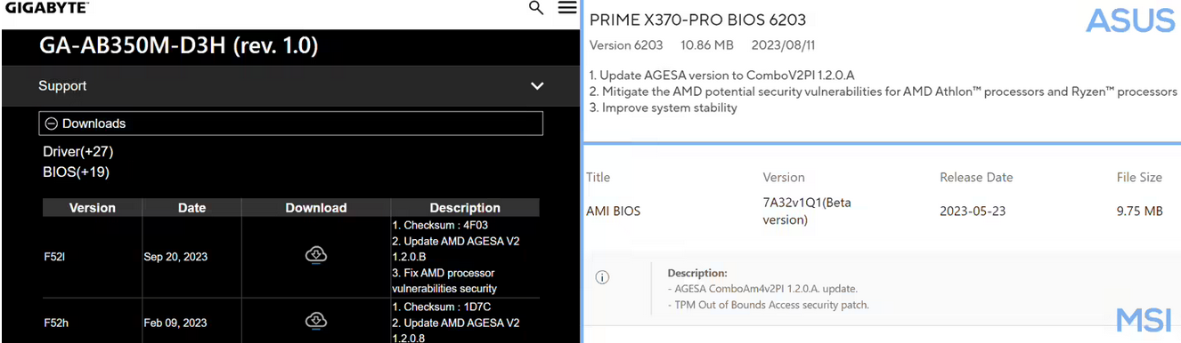Reddit의 많은 AM4 마더보드 사용자는 마더보드가 시장에 출시된 지 6년이 지난 후에도 여전히 업데이트를 받고 있다는 사실을 발견했습니다. 모든 주요 마더보드 제조업체는 지난 3~4개월 동안 최신 AGESA 펌웨어 업데이트를 포함하여 펌웨어 업데이트를 출시했습니다. 일부 보안 강화로.
