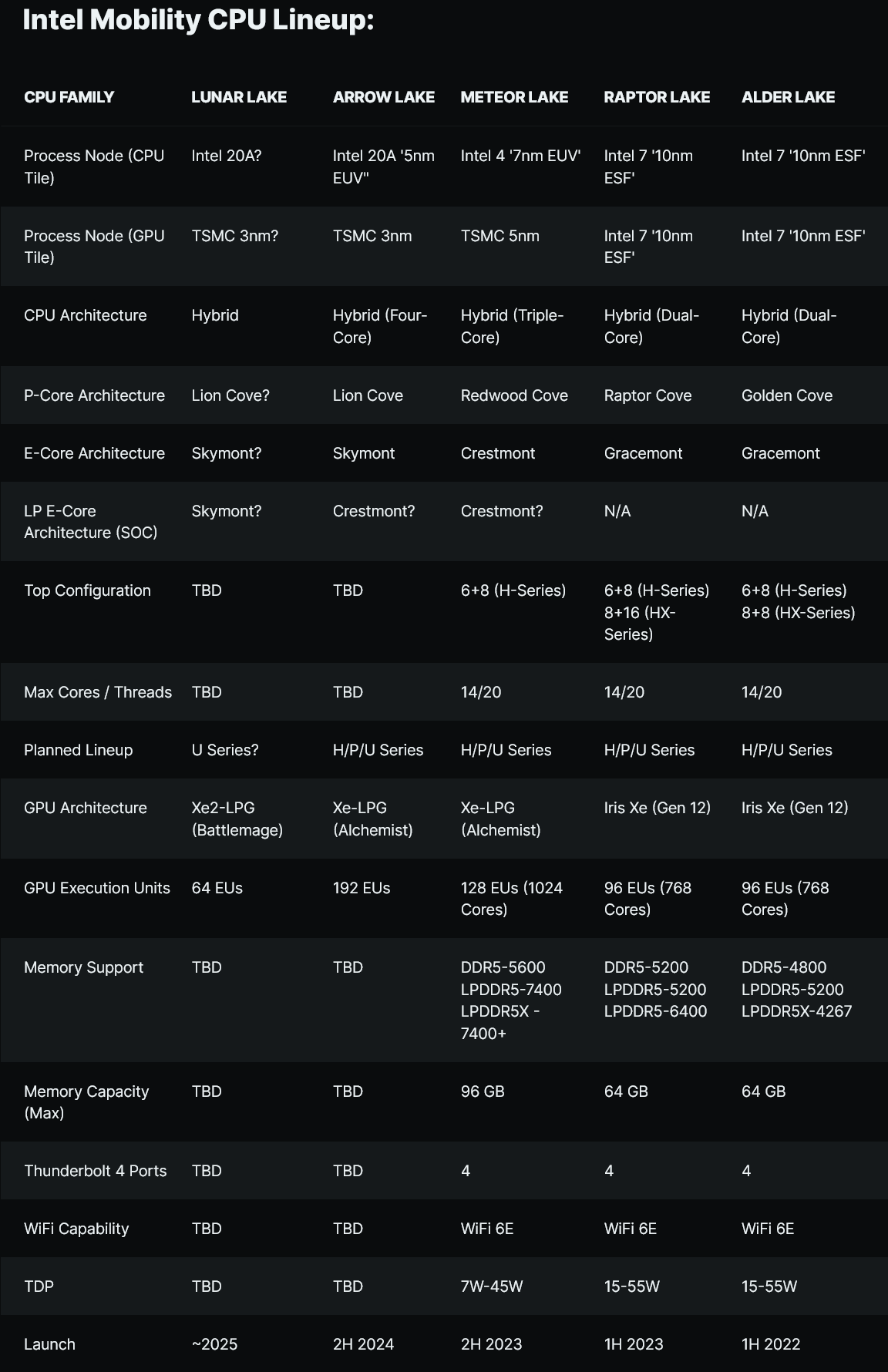 - 2024 - Meteor Lake-H / Raptor Lake Refresh-H / Arrow Lake-H