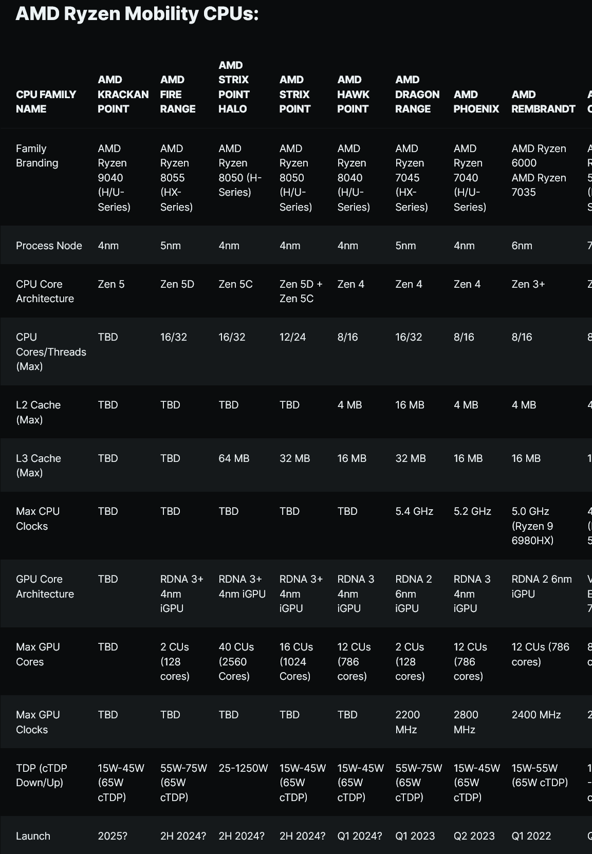 AMD Ryzen 7040 "Phoenix" APU의 실제 후속 제품은 Strix Point와 Strix Point Halo가 될 것이며, 둘 다 Ryzen 8050 APU 제품군에 속합니다. Strix Point 칩은 Zen 5C와 Zen 5D 코어가 혼합된 모놀리식 디자인을 제공하고 고급 Strix Halo 칩은 Zen 5C 코어만 포함하는 칩렛 디자인을 제공하므로 이러한 노트북 칩은 두 부분으로 분리됩니다.