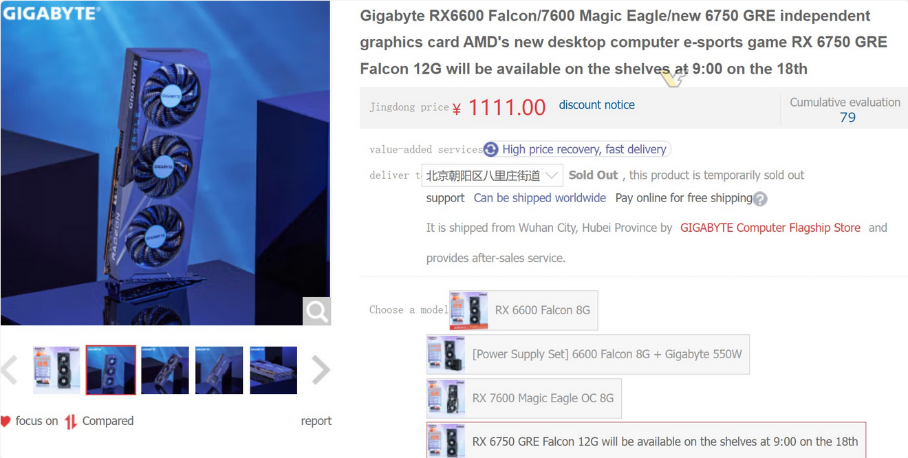 Gigabyte에 따르면 RX 6750 GRE는 10월 18일에 출시될 예정입니다. 이 회사는 이미 EAGLE 및 GAMING RX 6750 GRE SKU라는 두 가지 모델에 대한 예약을 접수하고 있습니다.