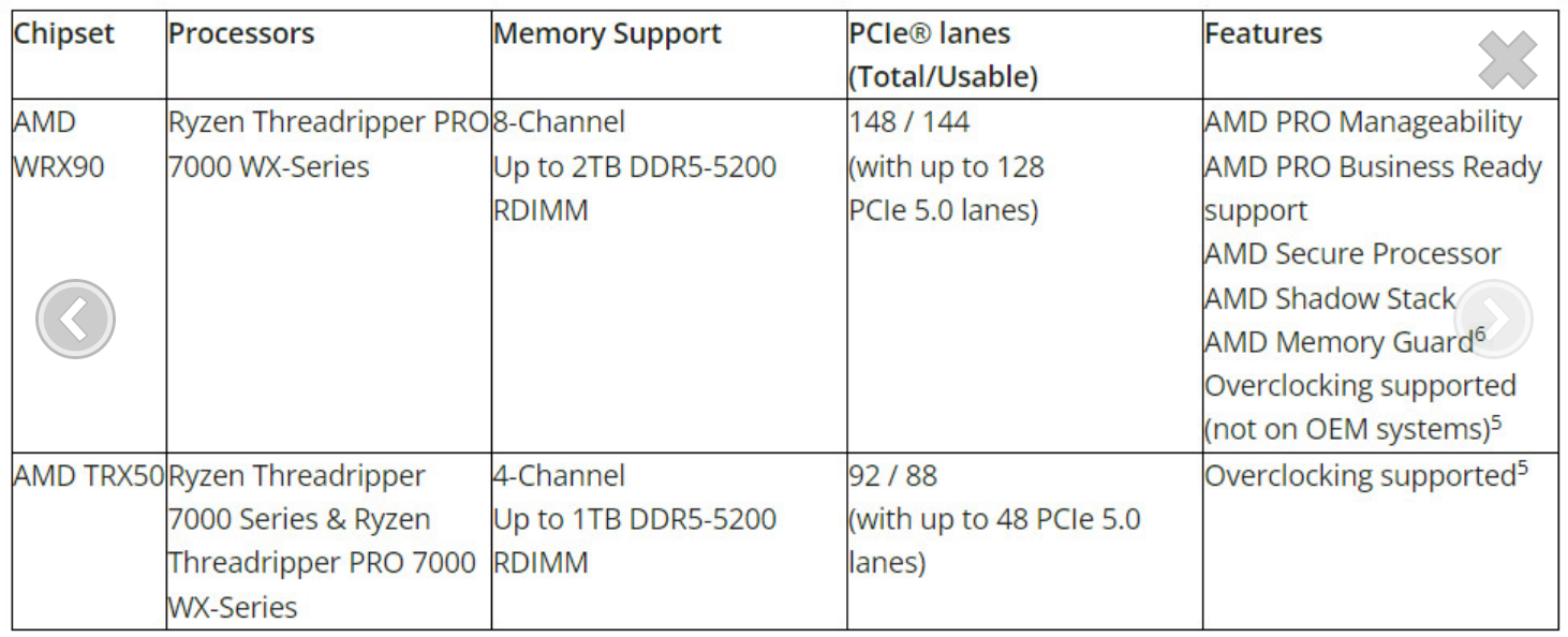 AMD Ryzen Threadripper 7000 시리즈 프로세서 및 Ryzen Threadripper PRO 7000 WX 시리즈 프로세서는 매니아와 전문가의 고유한 요구 사항을 충족하도록 맞춤화된 광범위한 마더보드 기능 지원을 제공합니다.