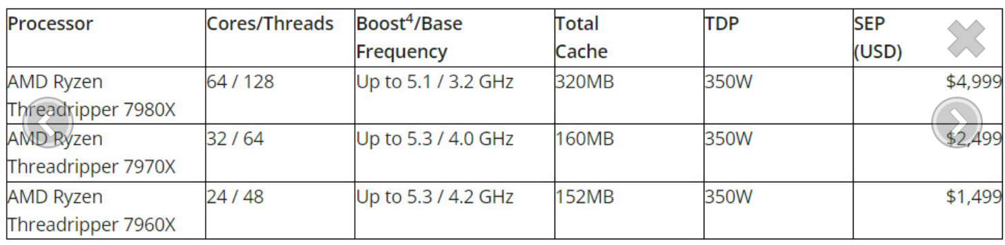 동시에 AMD는 AMD Ryzen Threadripper 7000 시리즈 프로세서를 출시하여 2020년 이후 처음으로 HEDT 환경으로 돌아왔습니다. 창의적이고 전문적인 사용자를 위한 AMD의 높은 표준을 유지하는 Ryzen Threadripper 7980X 프로세서는 매니아에게 가능한 최고의 컴퓨팅 성능을 제공합니다. 최고를 요구하는 사용자를 위한 뛰어난 멀티스레드 성능을 갖춘 데스크탑입니다. AMD "Zen 4" 아키텍처로 구축되고 데스크톱 사용자에게 최대 48개의 PCIe 5.0 레인을 제공하는 이 프로세서는 최대 64개의 코어와 128개의 스레드를 갖추고 있어 전례 없는 수준의 성능과 효율성을 제공합니다.