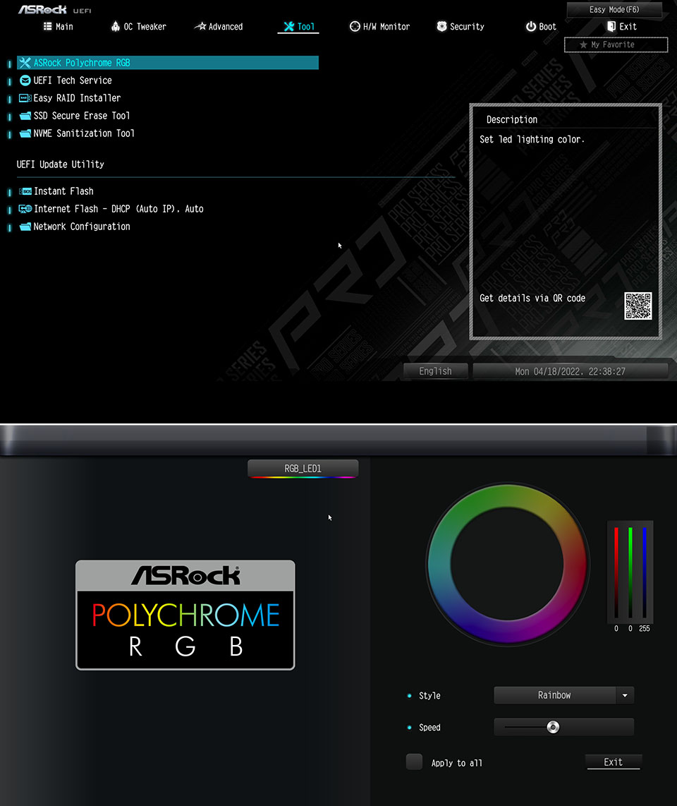 윈도우상에서 사용할수 있도록 애즈락에서 PolyChrome 소프트웨어를 제공하고 있습니다. 개인적으로 윈도우상에서 필요할때마다 변경하니까 훨씬 편하게 느꼇습니다. UI도 확실히 더 편한것 같구요.