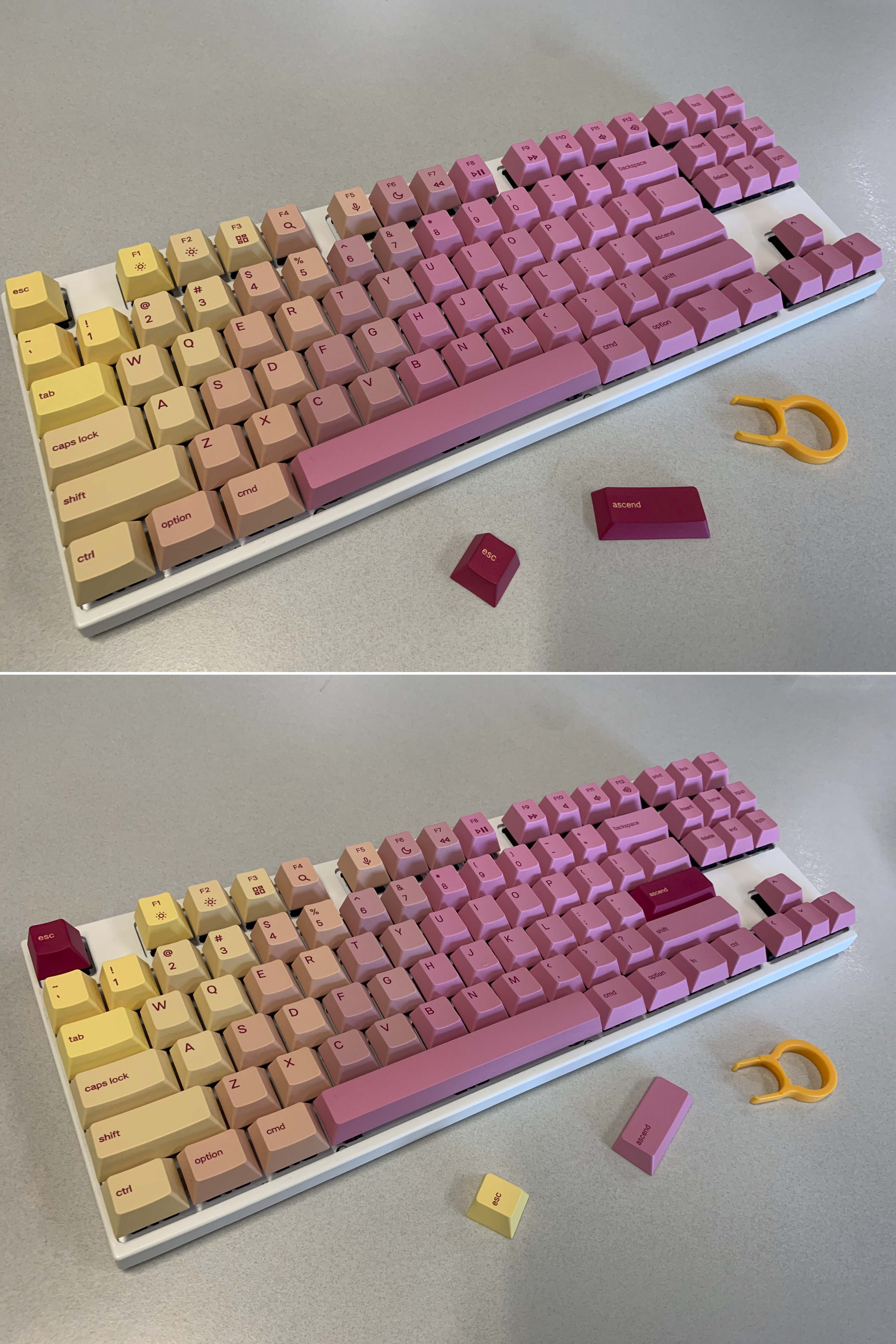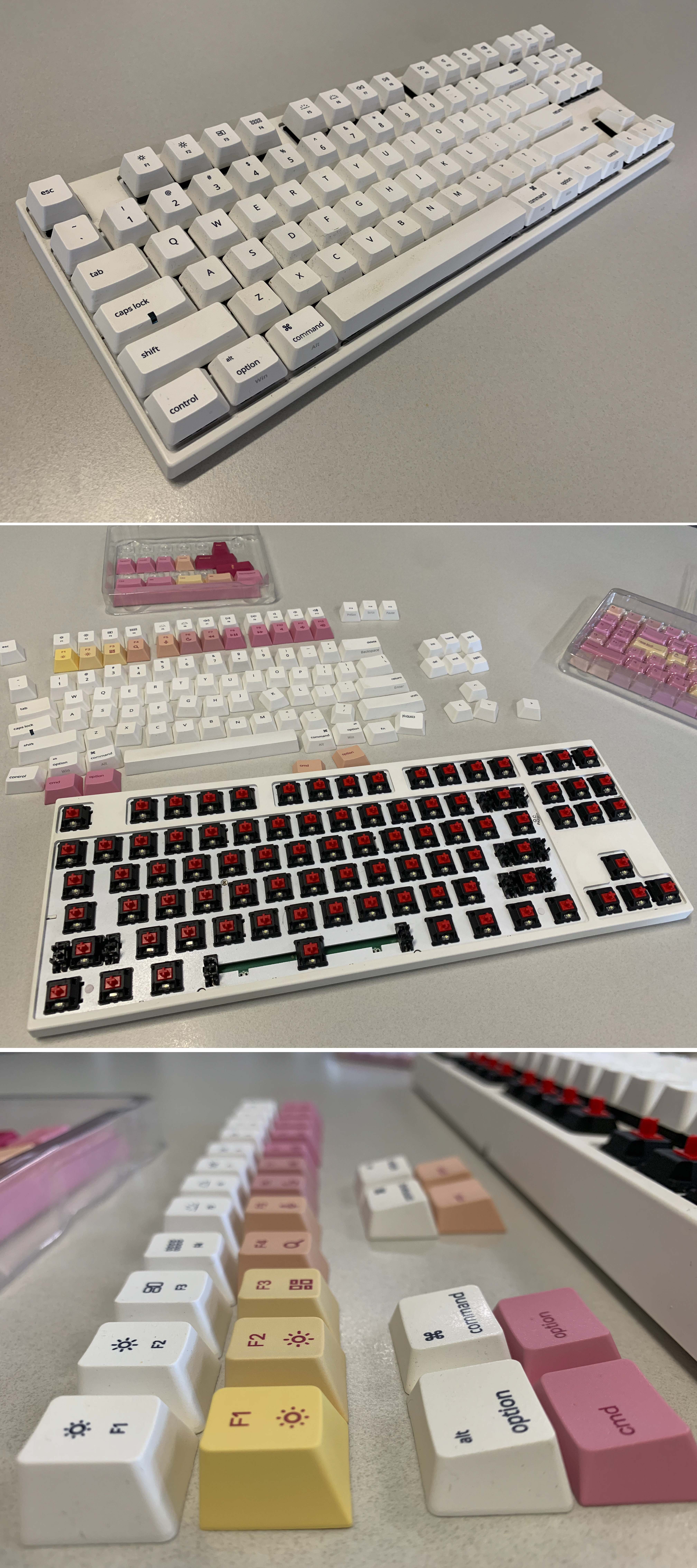 가장 전형적으로 많이 사용되는 108키 풀배열와 87키 텐키리스 키보드만 사용해왔기 때문에, 여분의 키캡으로는 구입한 키보드 베어본과 호환되지 않아, 디자인 뿐만 아니라 호환성이 얼마나 중요한지 알게되었습니다.