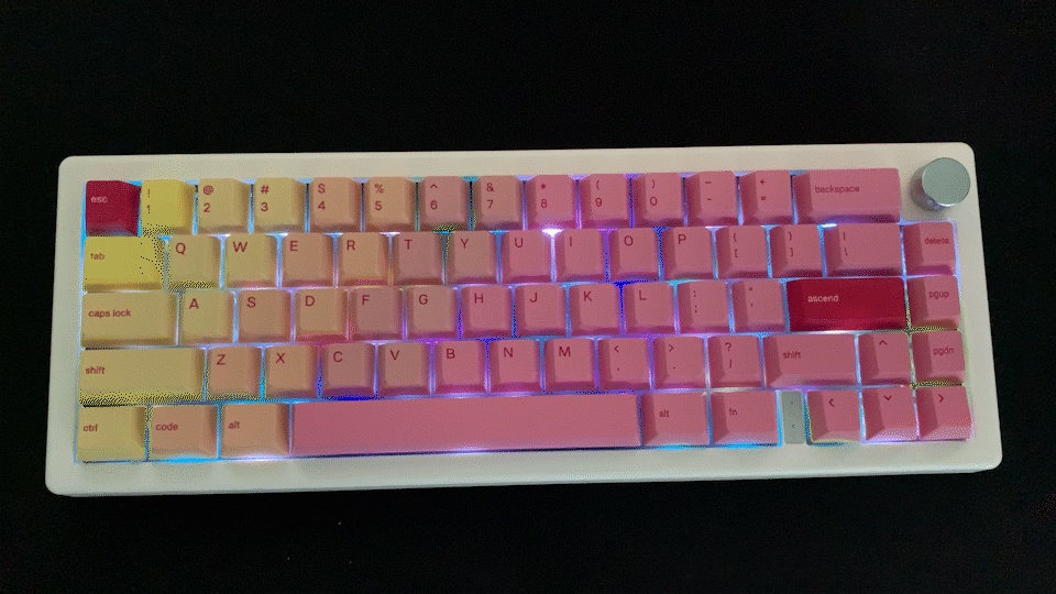 동일한 체리 프로파일로 구성되어 있고, ESC, ENTER키는 포인트키캡으로 조금 색다르게 연출할 수 있습니다.