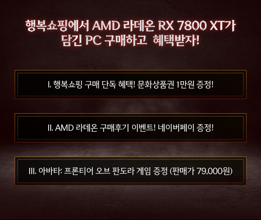 이벤트 기간에 구매하면, 문화상품권 1만원 + RX7800XT 네이버 이벤트까지 참여가능합니다.