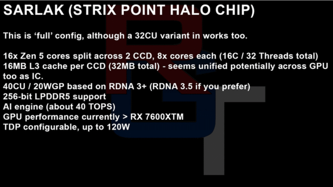 마지막으로 그는 AMD의 "Strix Halo" 또는 그가 "Sarlak"이라고 부르는 Ryzen 9 8955HX에 대해 조금 이야기합니다 . 이전에 읽지 않았다면 이 CPU는 최대 16개의 Zen 5 CPU 코어, 대규모 40CU RDNA 3.5 GPU 및 256비트 메모리 버스를 갖춘 칩렛 기반 프로세서가 될 것으로 예상됩니다. Socket AM5에는 맞지 않지만 킬러 게임용 노트북이나 Mac Mini와 같은 미니 PC를 만들 수 있습니다.