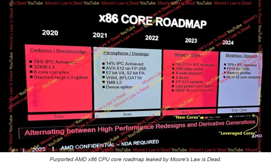 벤치마크를 제공한 후 RGT는 Ryzen 8000 시리즈 CPU와 Zen 5 프로세서 코어에 관해 들은 내용에 대해 조금 이야기했습니다. 이전의 10~15% IPC 기대치는 동료 YouTube 사용자인 Moore's Law is Dead가 유출한 CPU 코어 설계 내부 로드맵에서 나왔습니다. RGT에 따르면 이 수치는 특히 SPECint 벤치마크를 기반으로 한 것이며 Zen 5는 실제로 정수와 부동 소수점 연산을 혼합하는 작업 부하에서 훨씬 더 빠릅니다. 이는 Zen 5의 디스패치 너비(명령어 6개에서 명령수 8개로)가 늘어났기 때문일 수 있습니다.