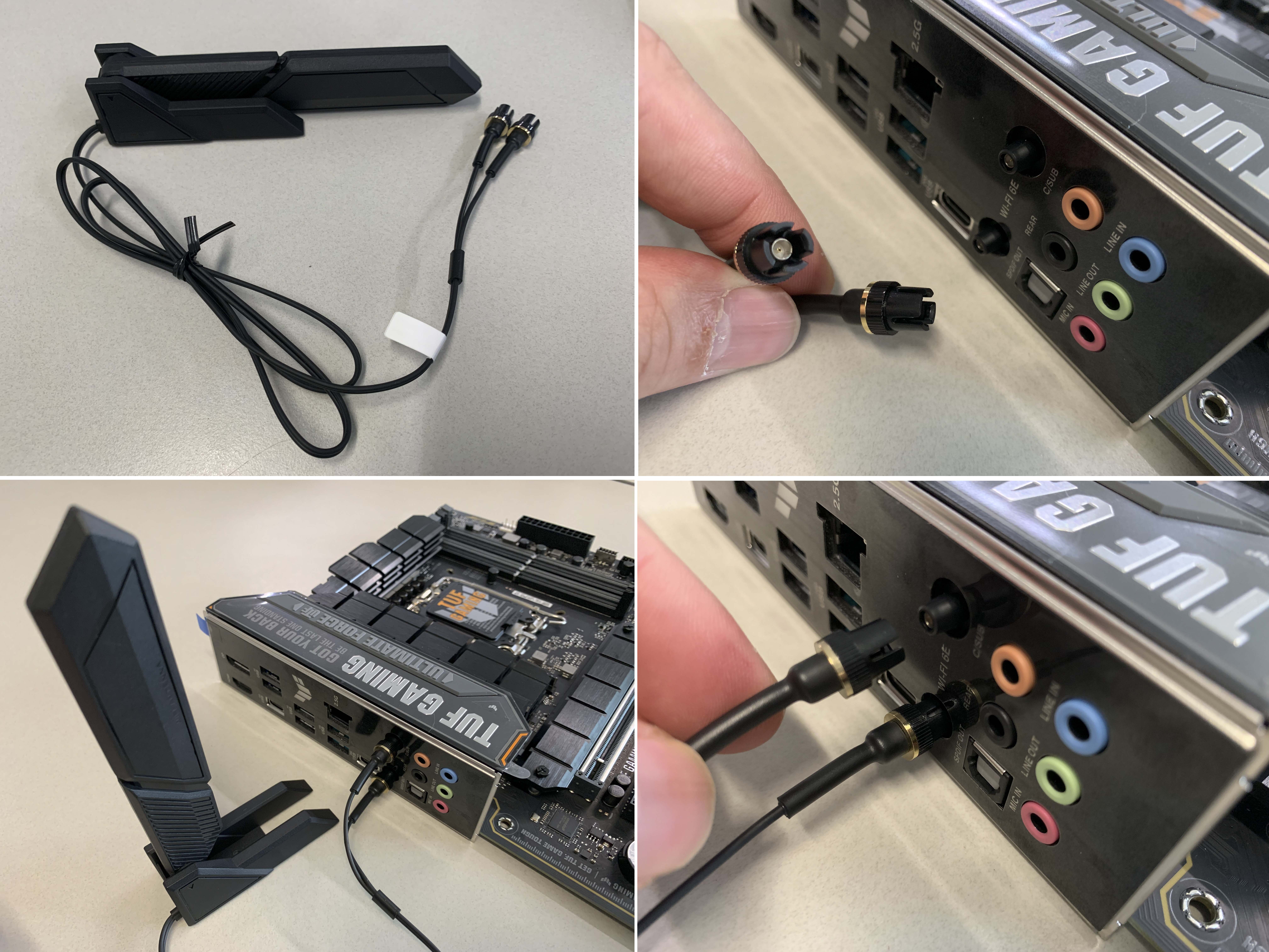 ASUS WiFi Q-Antenna로, Wifi 안테나를 PC에 쉽고 빠르게 조립이 가능하며, 2.4 / 5 / 6 GHz 대역을 지원하여 더 빠르고 더 먼 거리까지 수신 가능합니다.