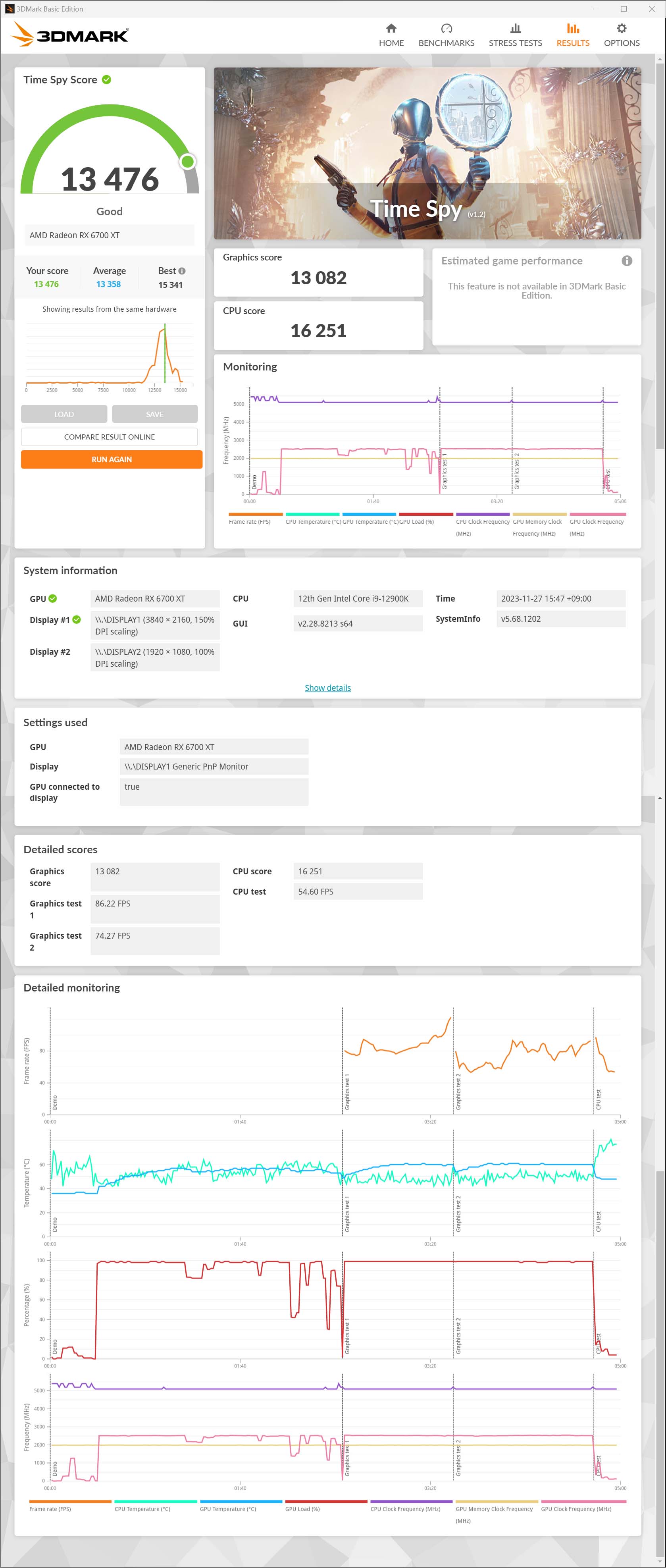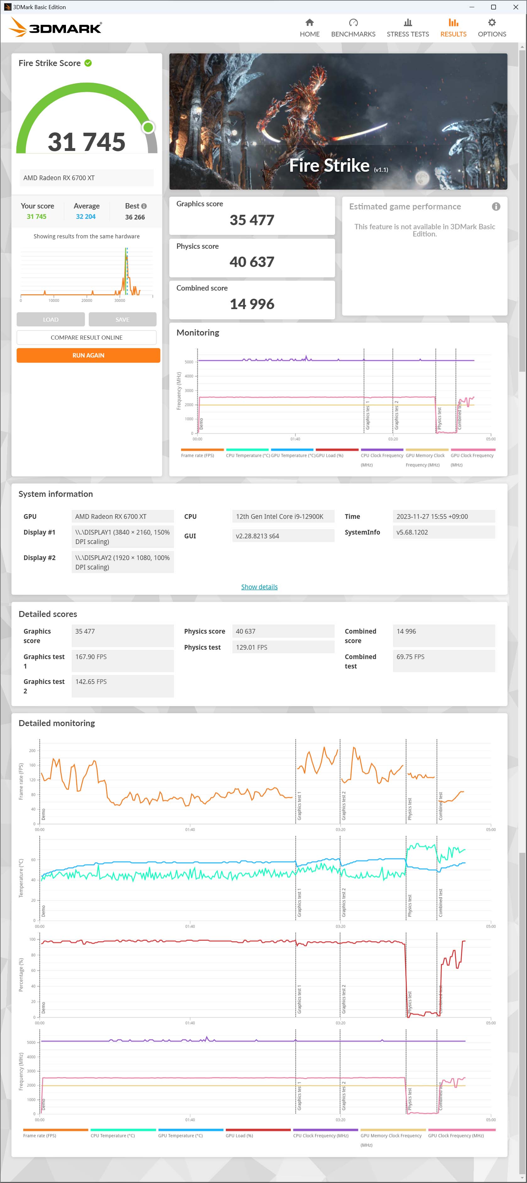 3DMARK 파이어 스트라이크와 타임 스파이 실행결과입니다.