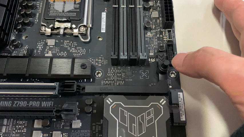 그래픽카드를 장착할 PCIe5.0, 그래픽카드가 점점 커지고, 특히 수랭 쿨러가 아닌 공랭 쿨러를 장착했을 경우, 손이 잘 닿지 않아서 그래픽카드를 분리하기가 쉽지 않은데, PCIe Slot Q-Release 을 적용하여, PCIe 슬롯에서 그래픽카드를 안전하고 쉽게 분리가능합니다.
