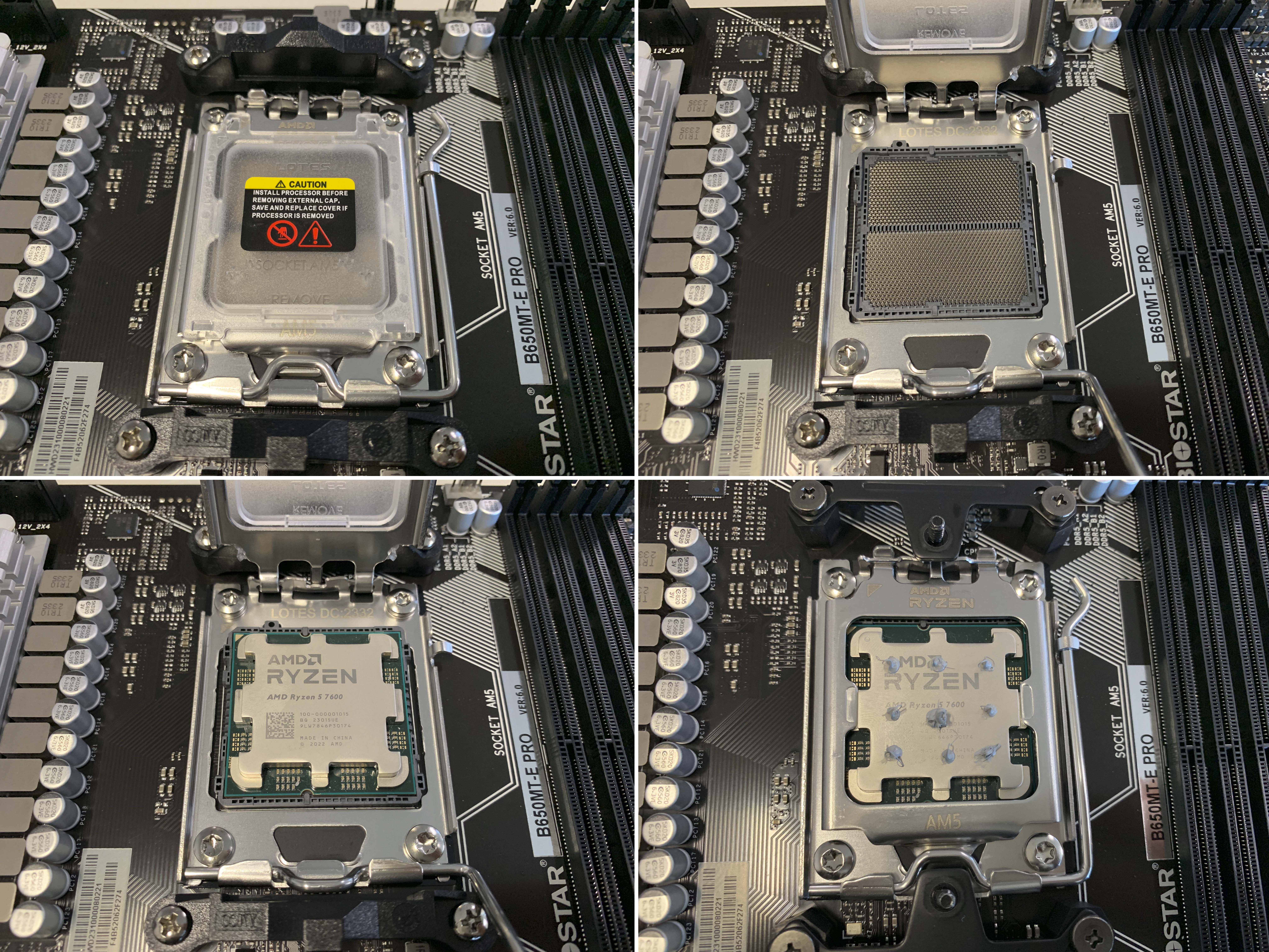 테스트에 사용할 라이젠 7600를 설치하고, 써멀컴파운드는 9개의 점으로, 가운데 점만 좀더 크게 도포했습니다.