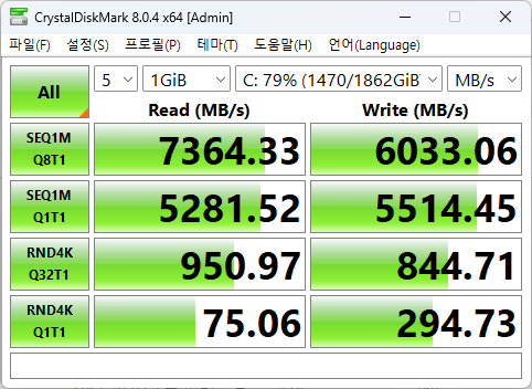 SSD의 스펙상의 성능을 제대로 뽑아내는 만족스러운 결과입니다.