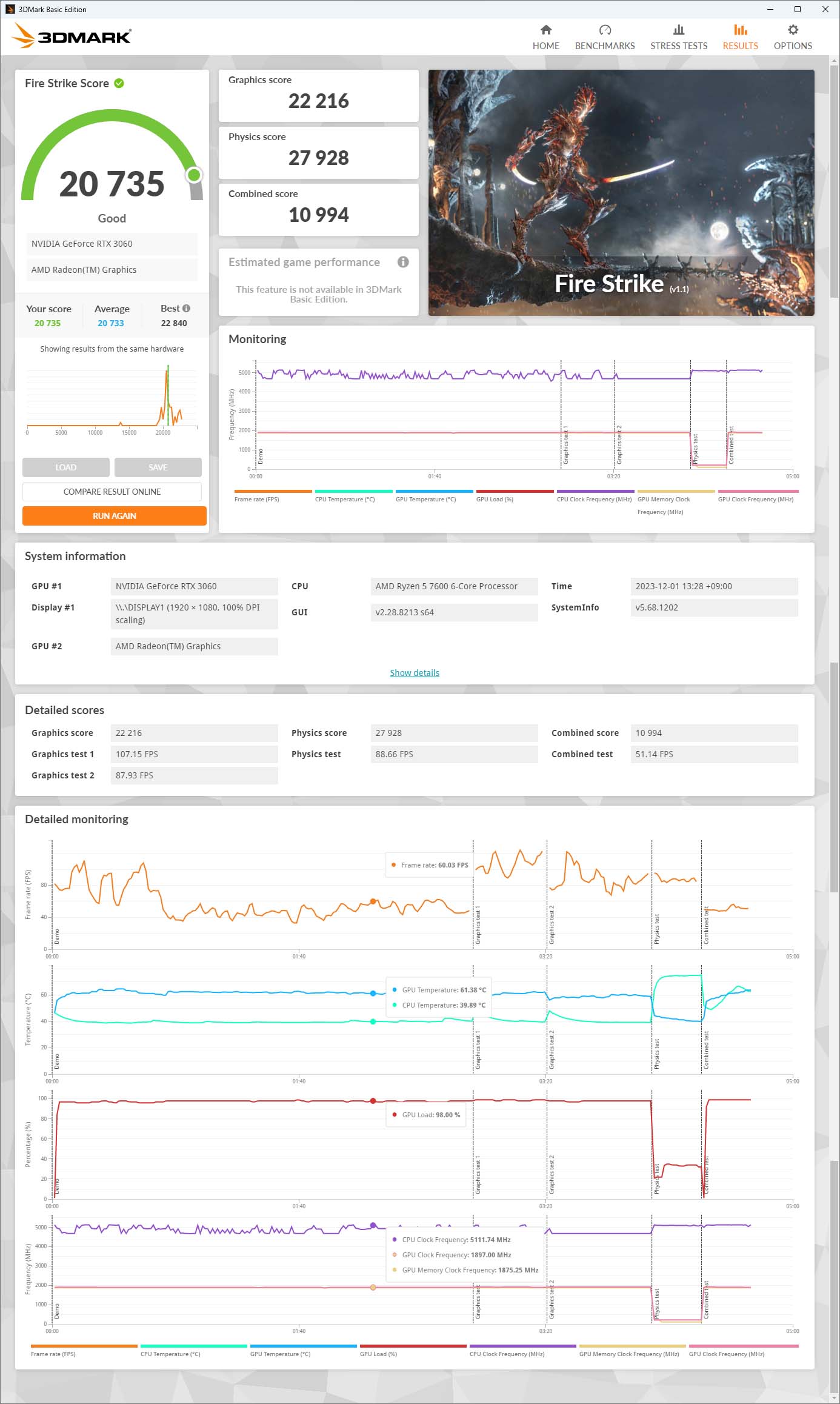 게임에 가장 가까운 테스트인 3DMark Firstrike테스트 결과 입니다.