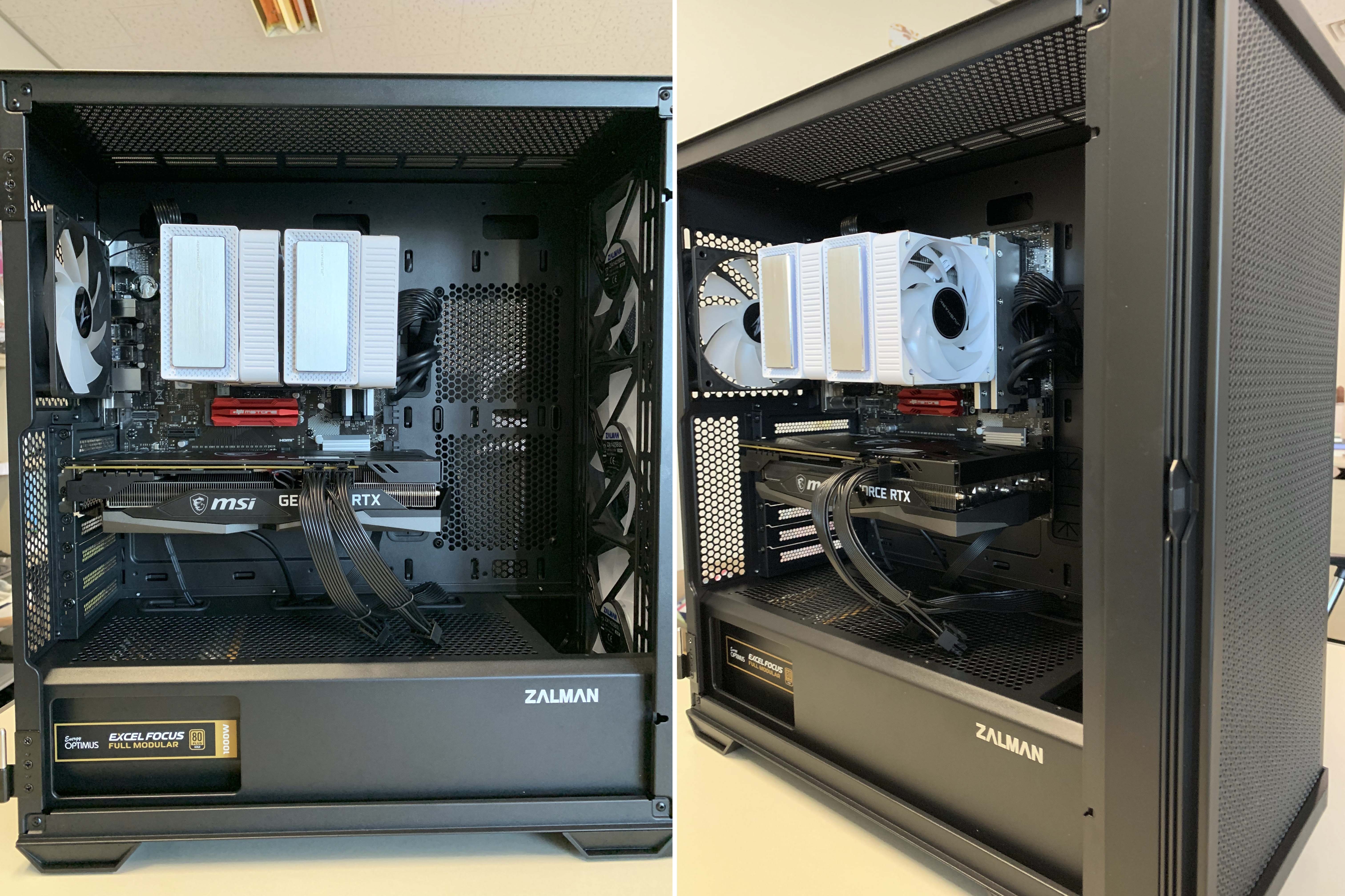 쿨링팬을 위로 이동하지 않고, 45mm 높이 메모리 지원 가능하며, 쿨링팬을 위로 올릴 경우 더 여유가 생깁니다.
