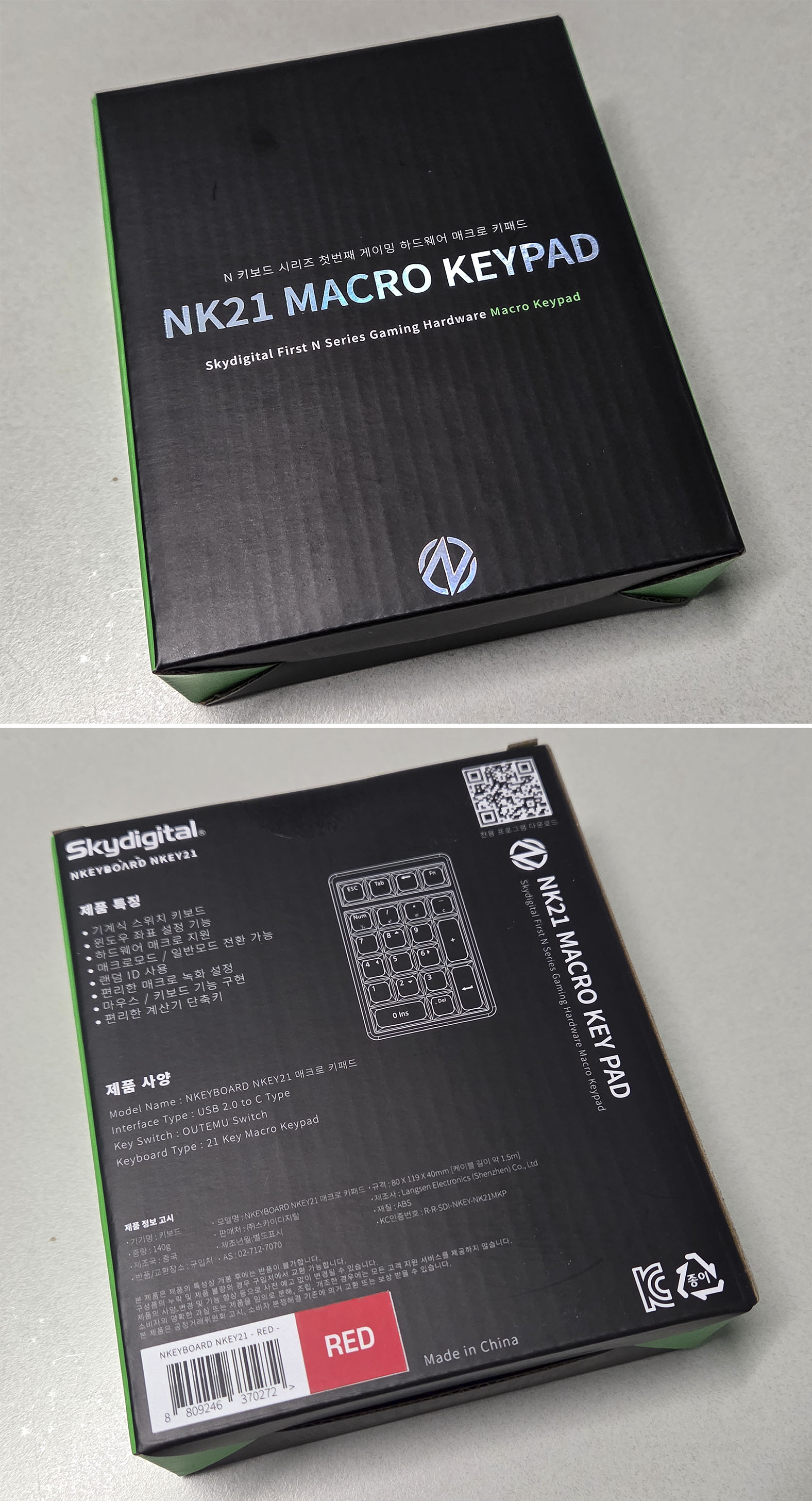 스카이디지탈 nKeyboard NK21 매크로 키패드는 적축과 갈축 2종이 있으며, 제가 소개하는 제품은 적축입니다.