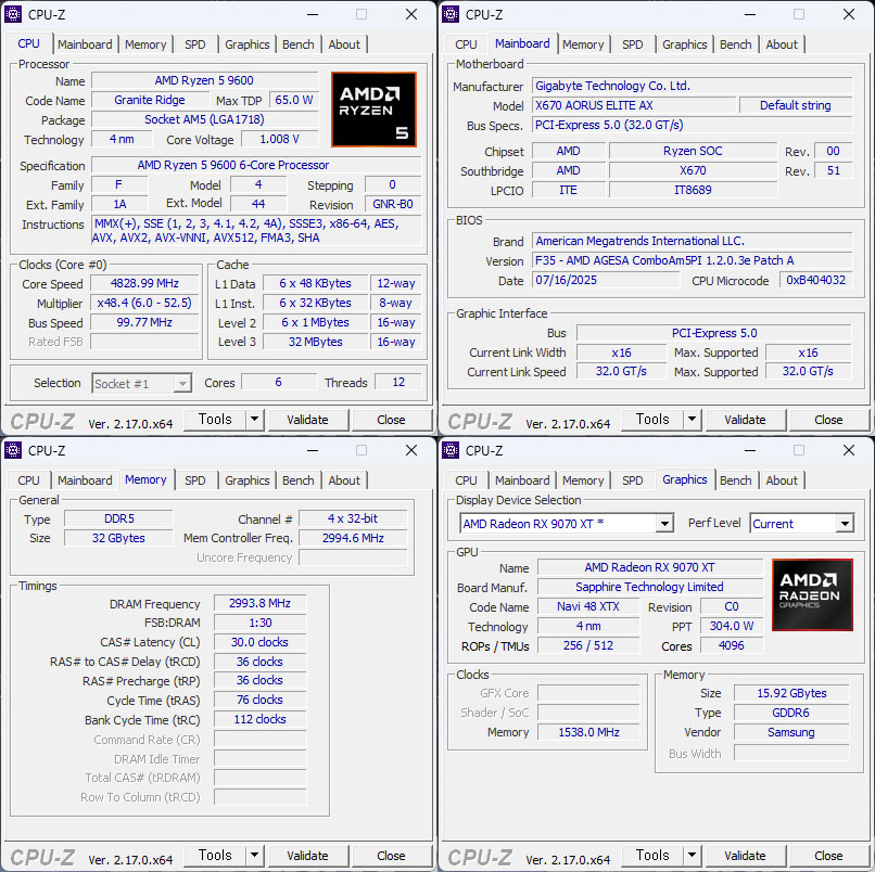 (라이젠5 9600은 PBO Enable, Curved Optimize All -30, 램 EXPO 6000MHz CL30)