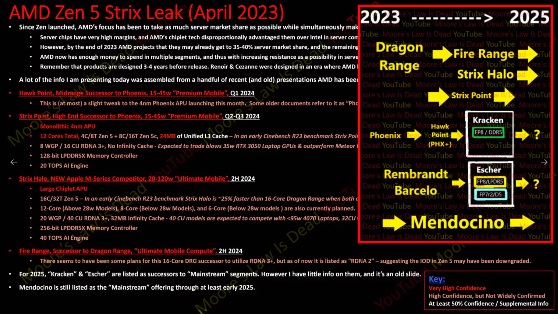 AMD의 차세대 Zen 5 및 Zen 4 기반 Ryzen 8000 Fire Range, RDNA 3.5 GPU 코어가 장착된 Strix Point 및 Hawk Point APU가 무어의 법칙이 죽었다는 내용으로 유출되었습니다.