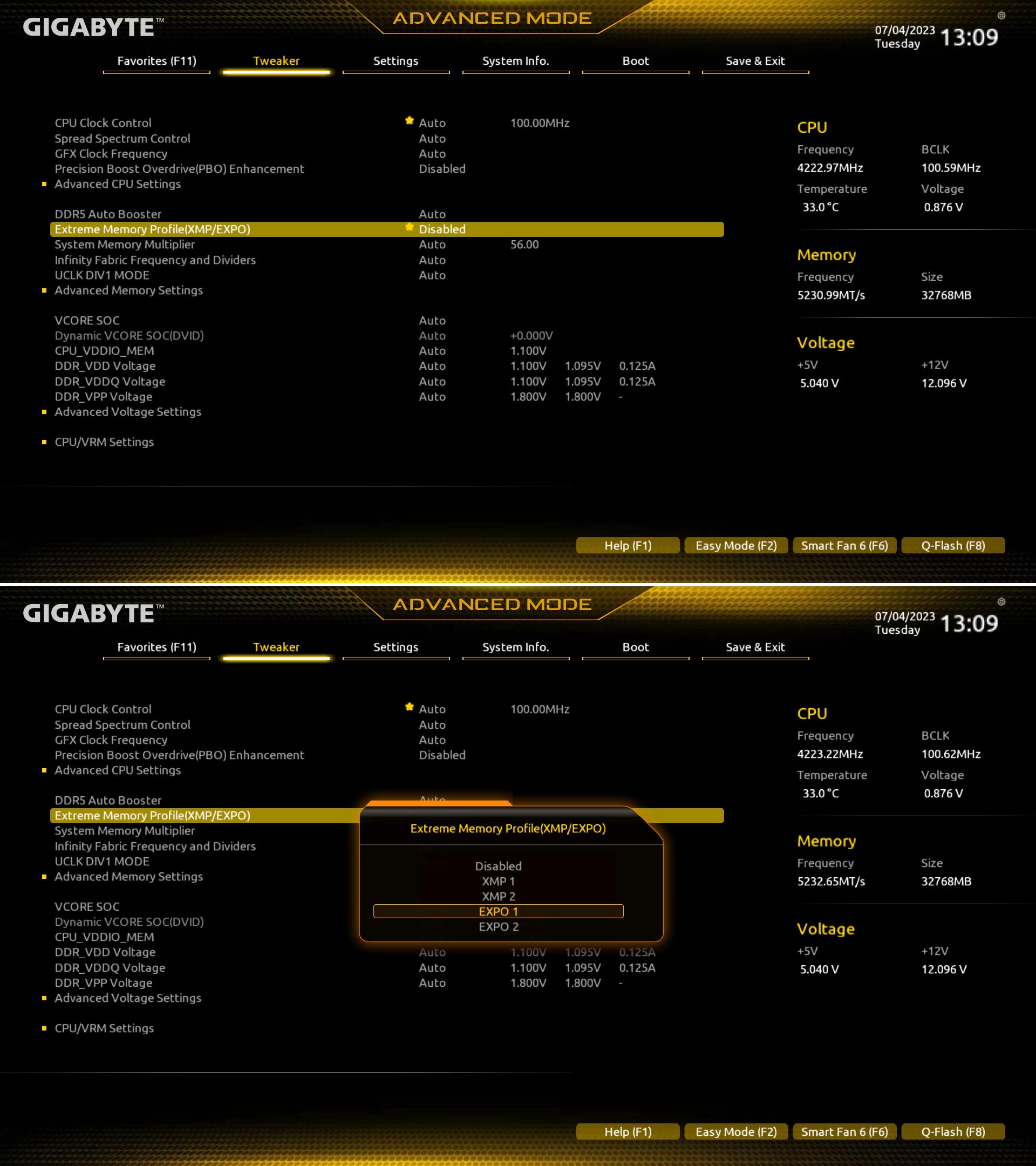 부팅하고 Q-Flash에서 업데이트를 진행했습니다.